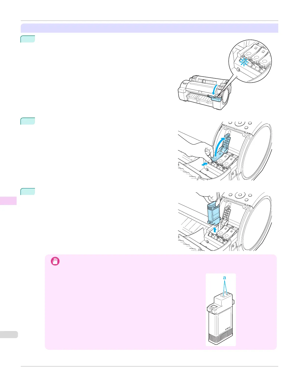 holes (a) facing up. Otherwise, ink may leak and cause stains. Put the