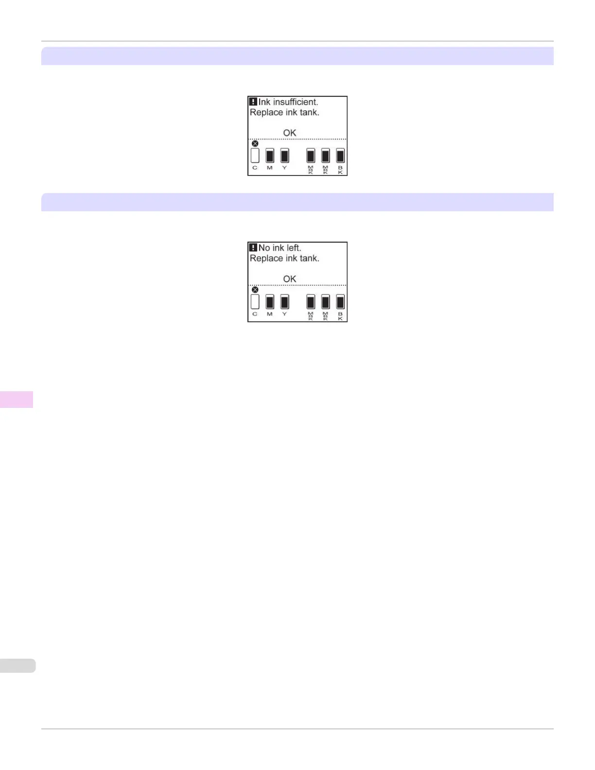 If little ink is left, there may not be enough for large-format printing, head cleaning, and maintenance, which require a