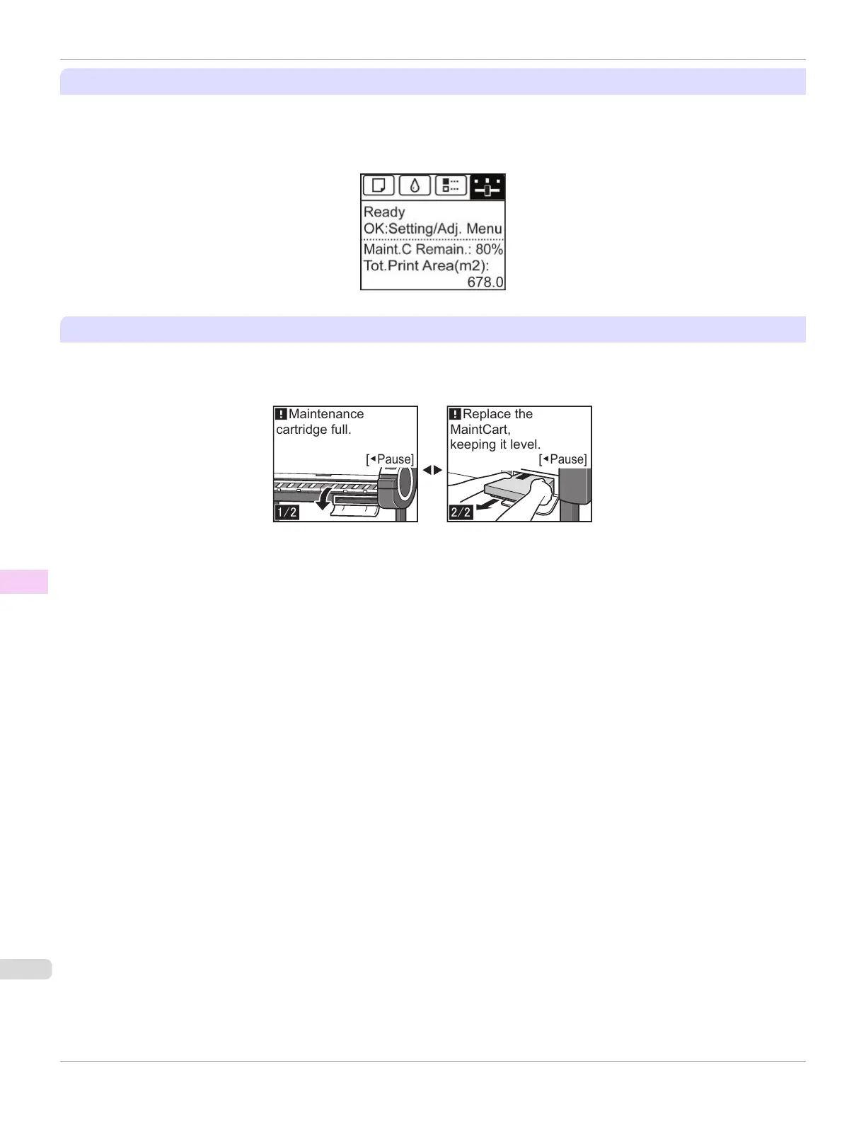 Check the remaining Maintenance Cartridge capacity before this maintenance and replace the Maintenance Cartridge