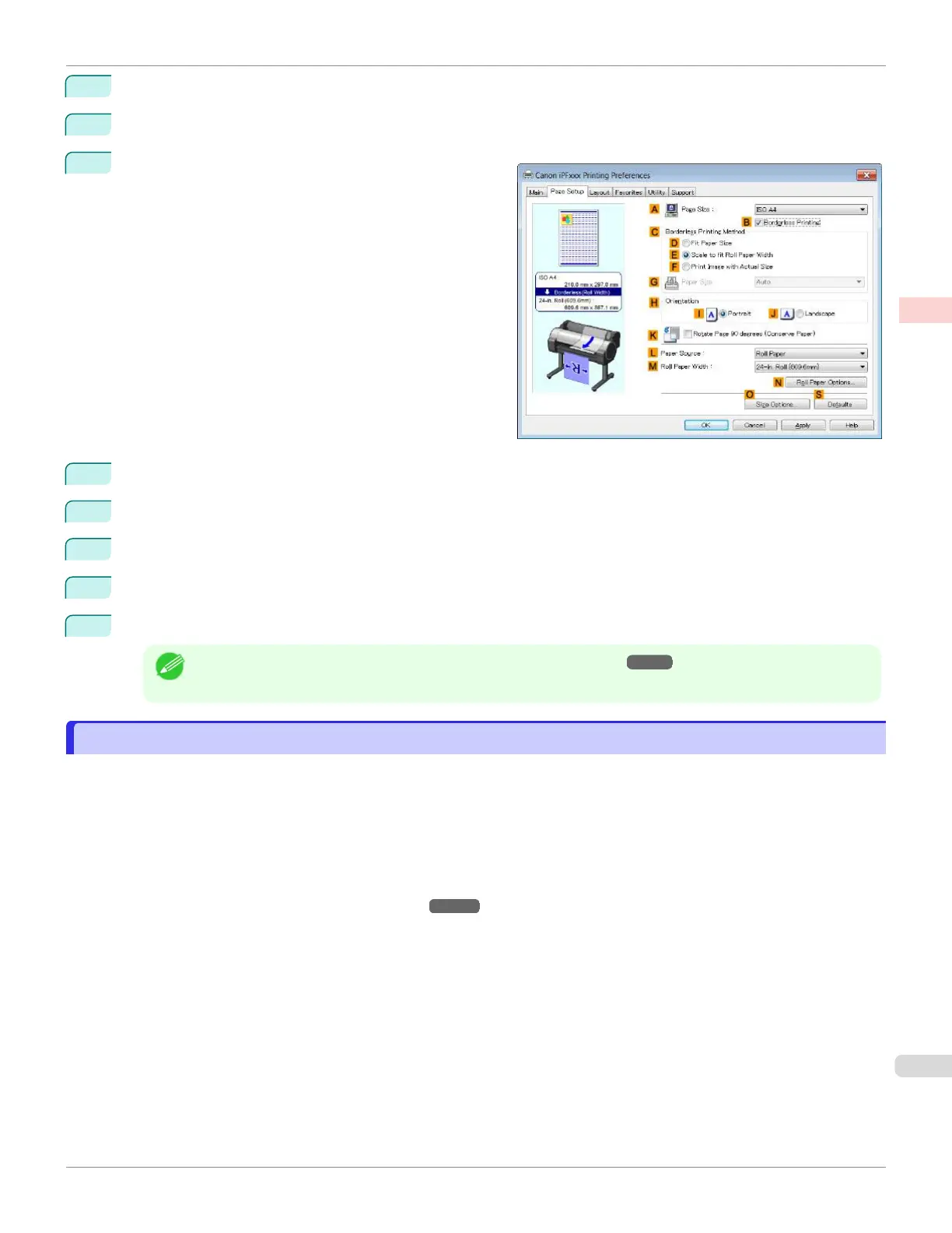 In C Borderless Printing Method, click D Fit Paper Size.