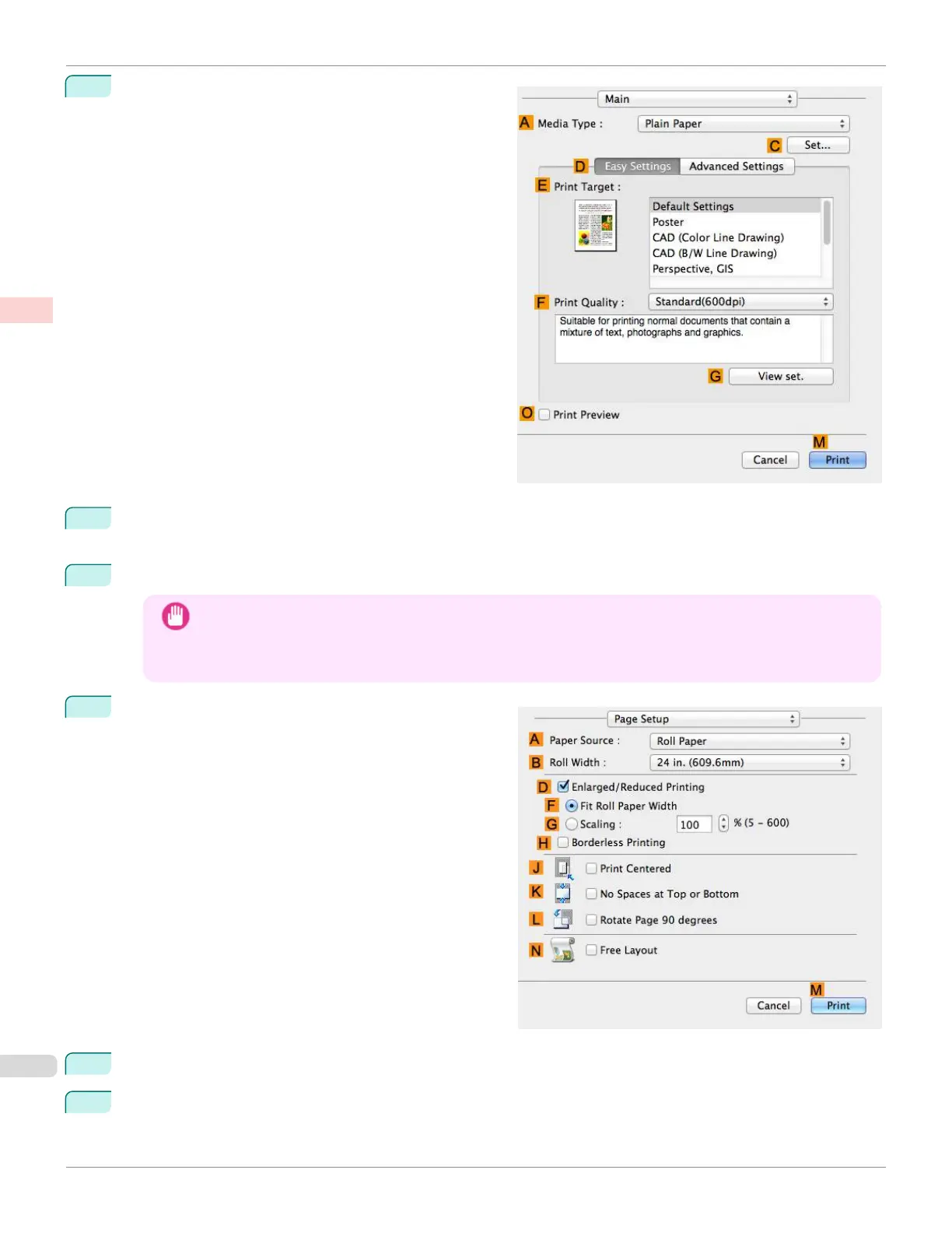 Borderless Printing by Resizing Originals to Fit the Roll Width (Mac OS)