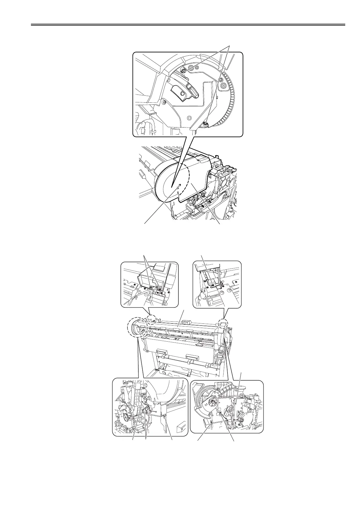 4) Remove three screws [1], and then remove the left roll cover [2].