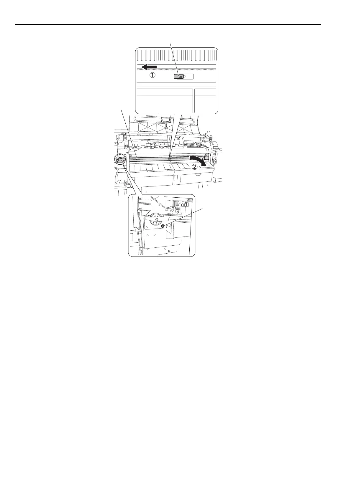 4) Remove one screw [1], move the cutter rail unit [2] to the left to release it from two protrusion [3], and then remove it rightward.