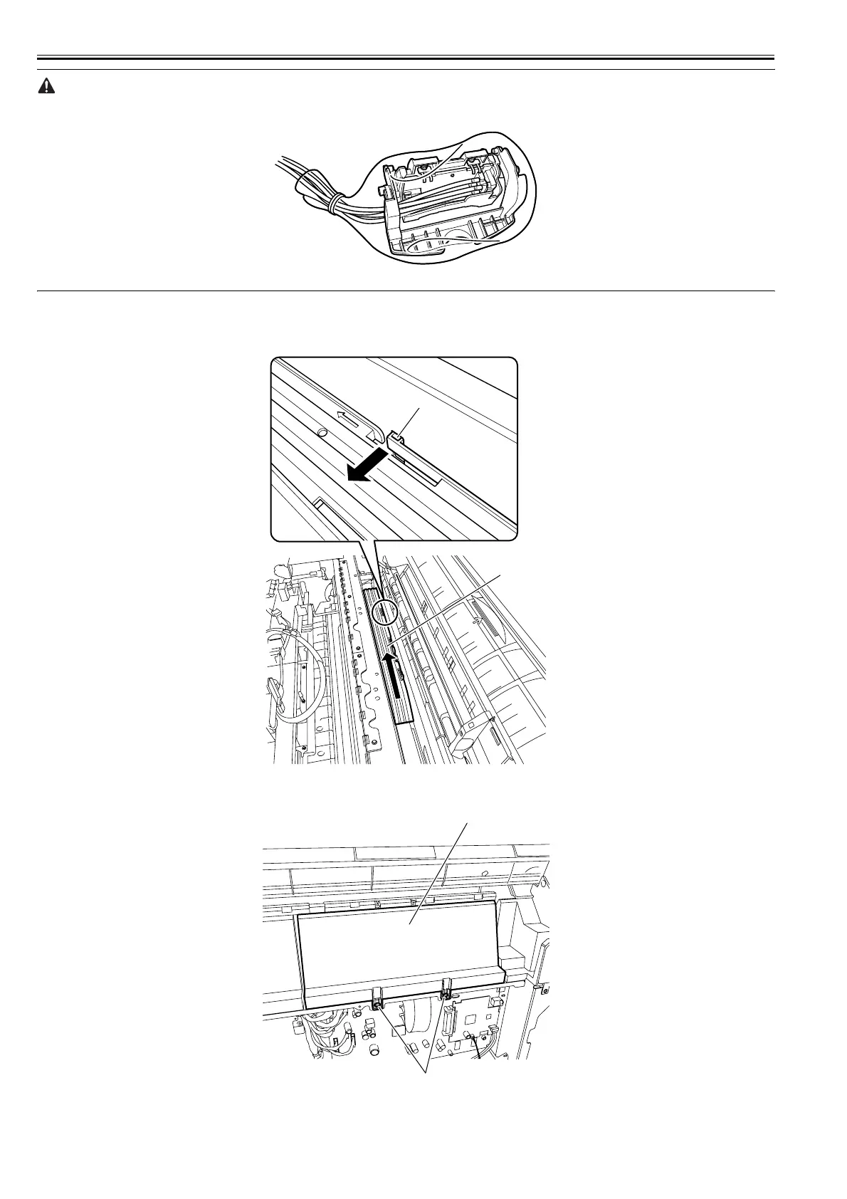 8) Release the hook [1], and then remove the flexible cable guide [2] by sliding it to the left.