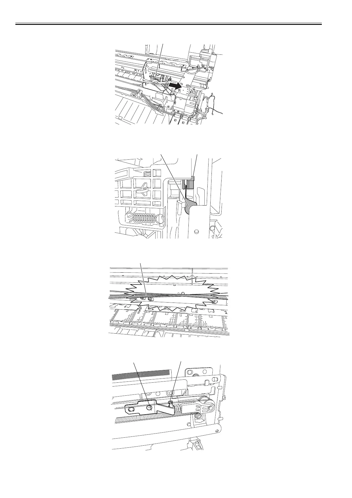- Reinstall the carriage belt [1] carefully so that it is not twisted. After reinstalling it, check whether the carriage moves on the platen smoothly.
