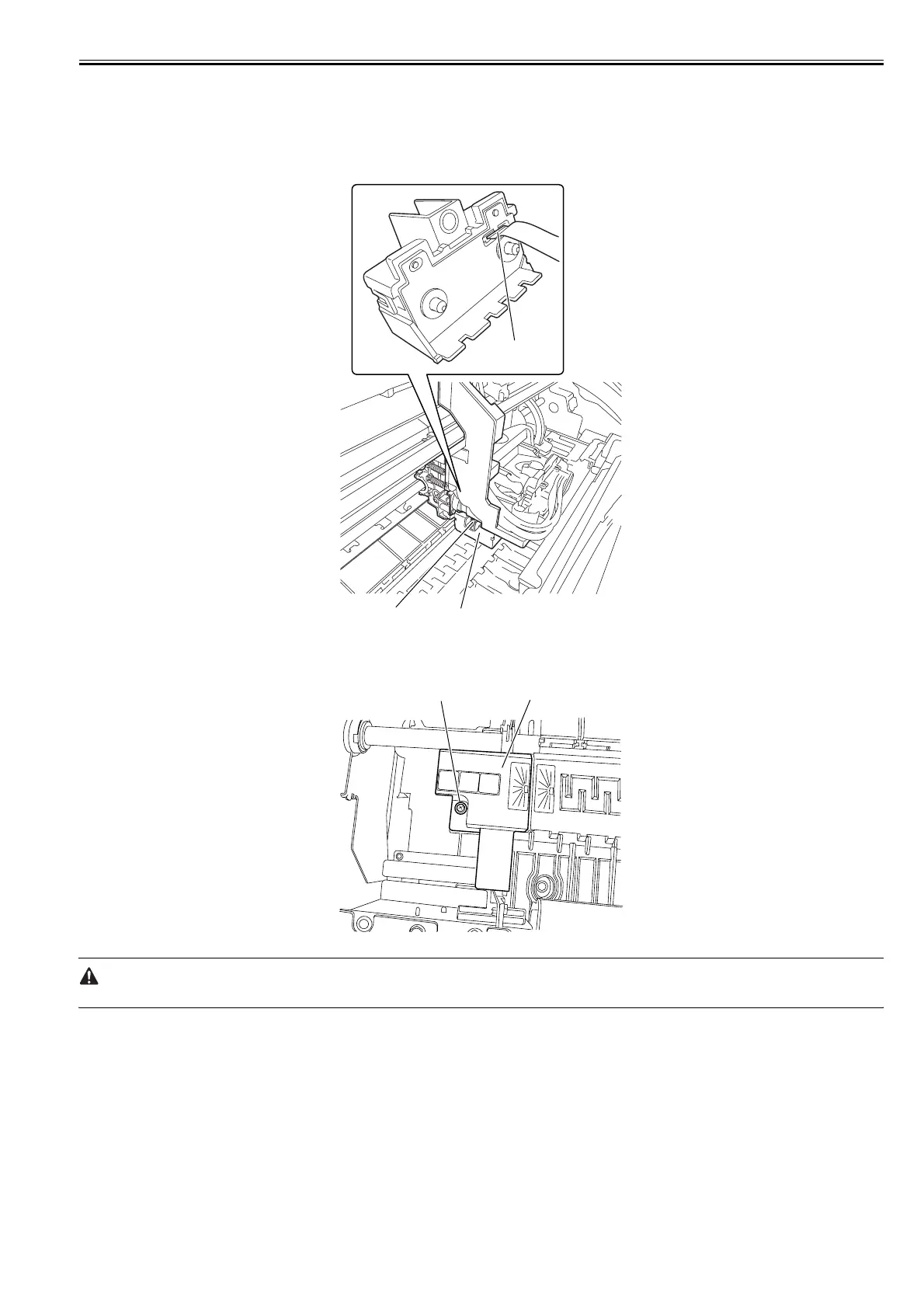 1) Unlock the carriage unit, and then move the carriage onto the platen. Refer to "Disassembly/Reassembly > Points to Note on Disassembly and Reassembly >