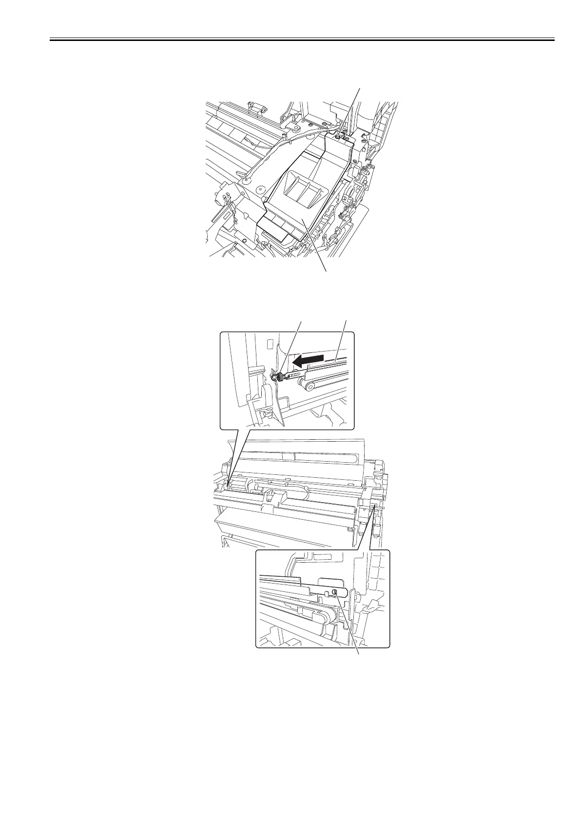 3) Remove one screw [1], and then remove the carriage upper cover [2].