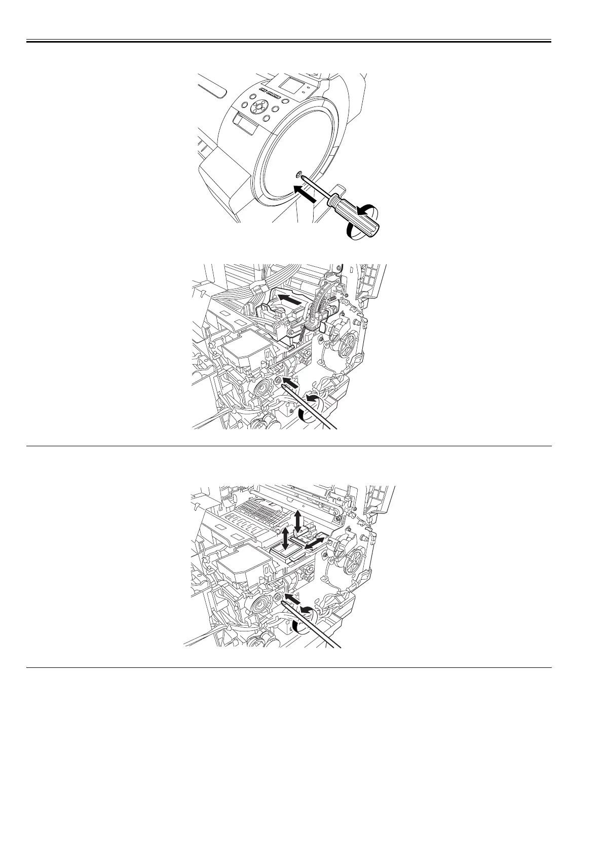 Turning the screwdriver continuously repeats the vertical movement of the cap and carriage lock pin and the to-and-fro movement of the wiper unit. Visually check