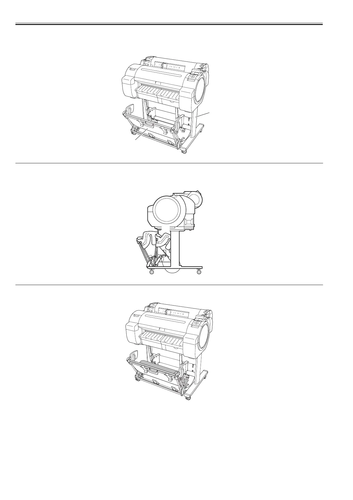 The stand [1] is equipped with casters so that the printer can be easily moved. The output stacker [2] included with stand can use by the three ways of the regular