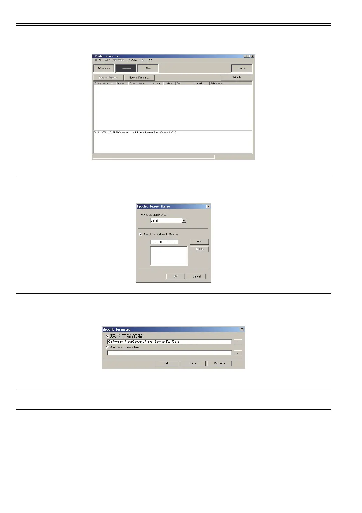 Specify the folder stored the file by the [Specify Firmware Folder] of the [Specify Firmware] dialogue box or specify the file (.jdl file) by the [Specify Firmware