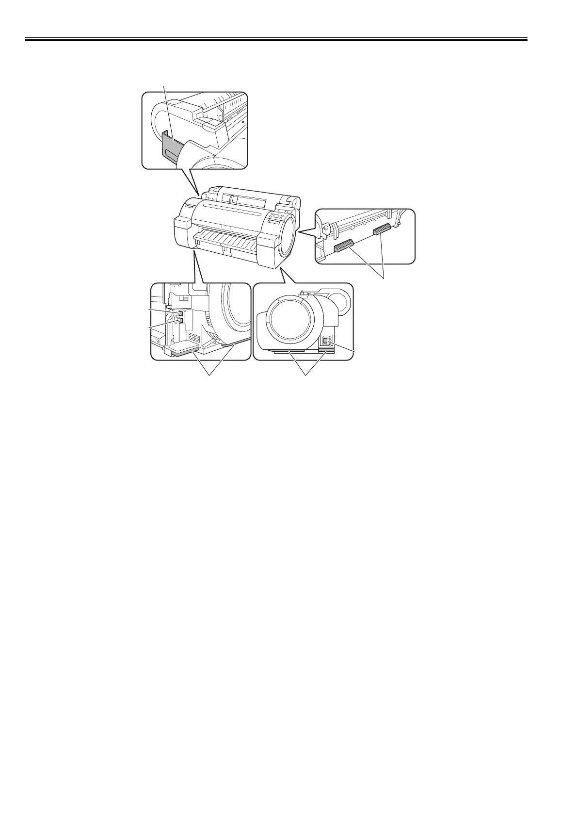 Three carrying handles provided at the left, right, and back allows three persons to carry the printer.