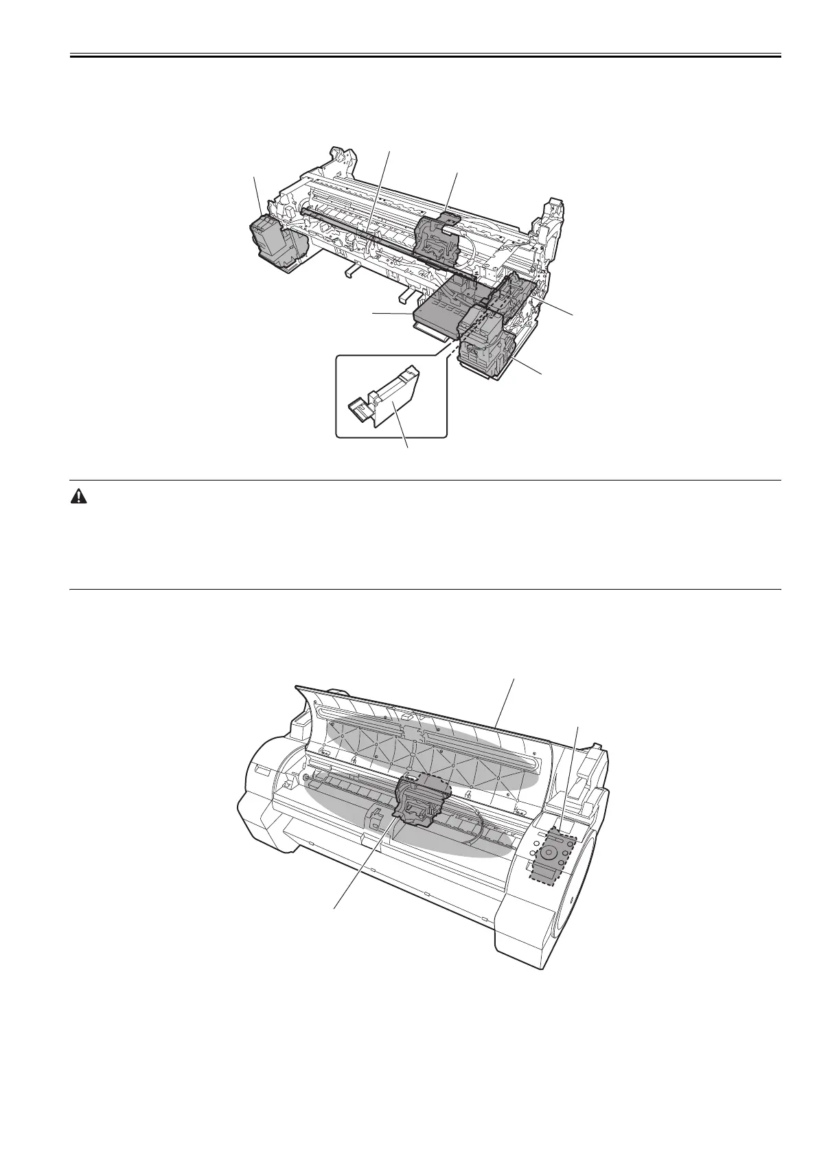 These stains may soil the print media or hands and clothes when servicing the printer. Wipe them off carefully with a soft, well-wrung cloth.