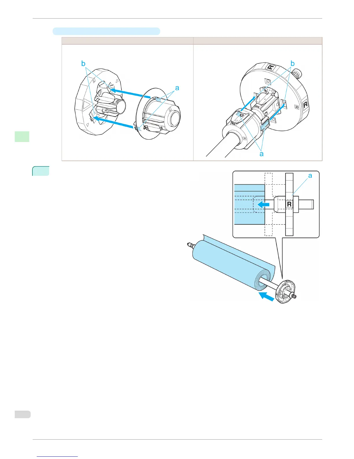 Align the tips (a) of 3-Inch Paper Core Attachment R with
