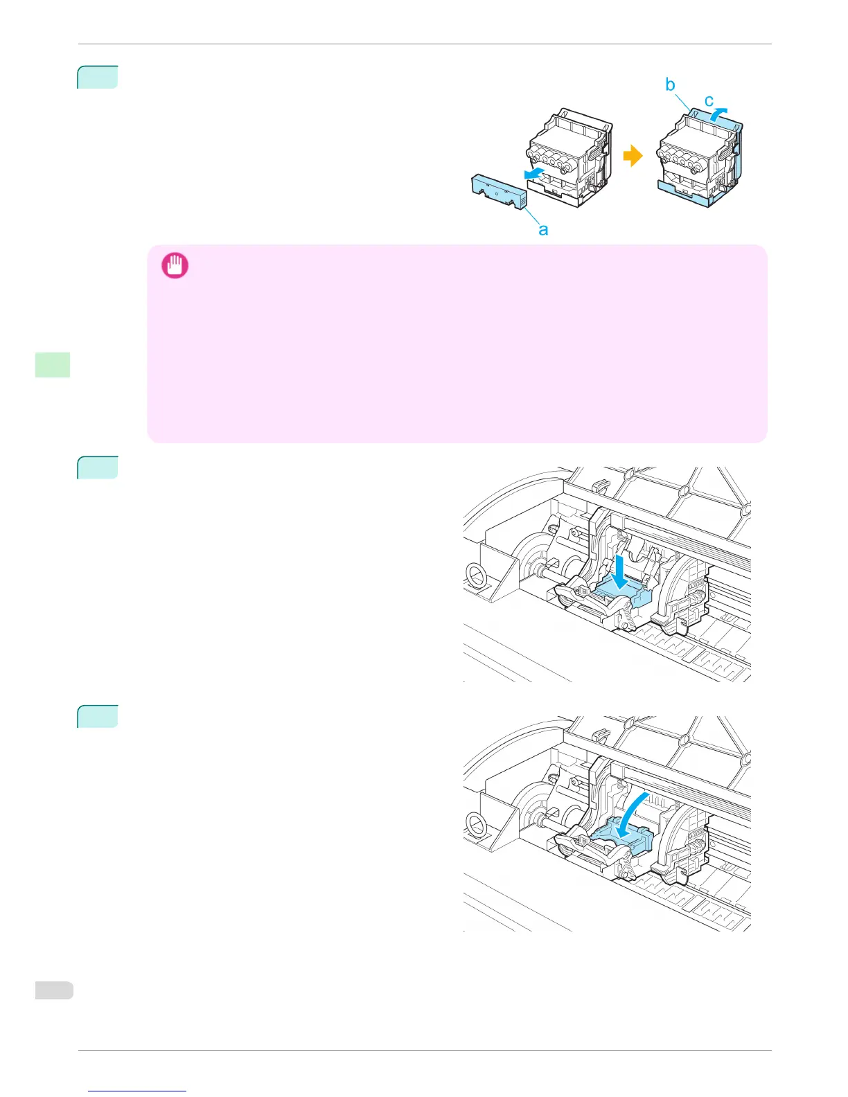 • If you need to put a Printhead somewhere temporarily before installation, do not keep the nozzles and
