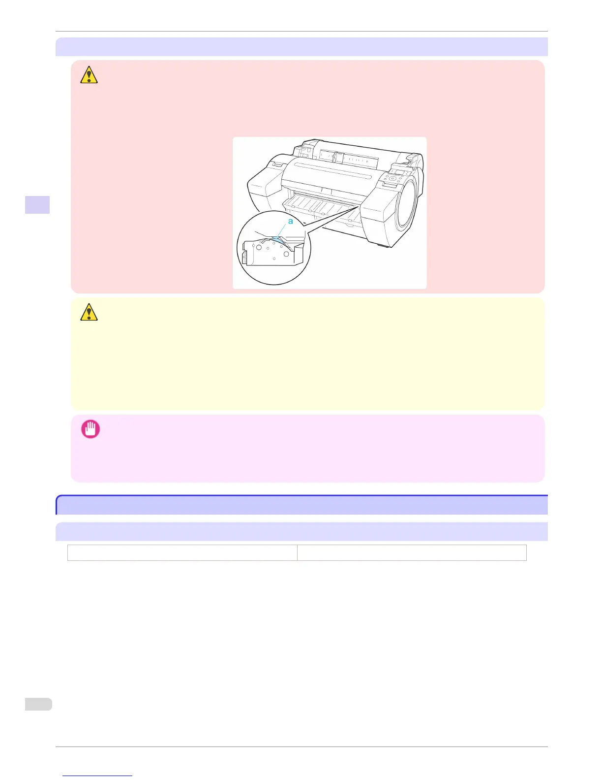 • Never insert your hand into the printer while it is printing. Moving parts inside the printer can cause injuries.
