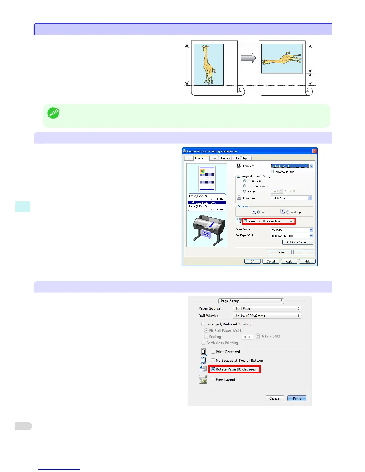 • If the page would exceed the roll paper width after rotation, you can use this function with Scale to fit Roll Paper
