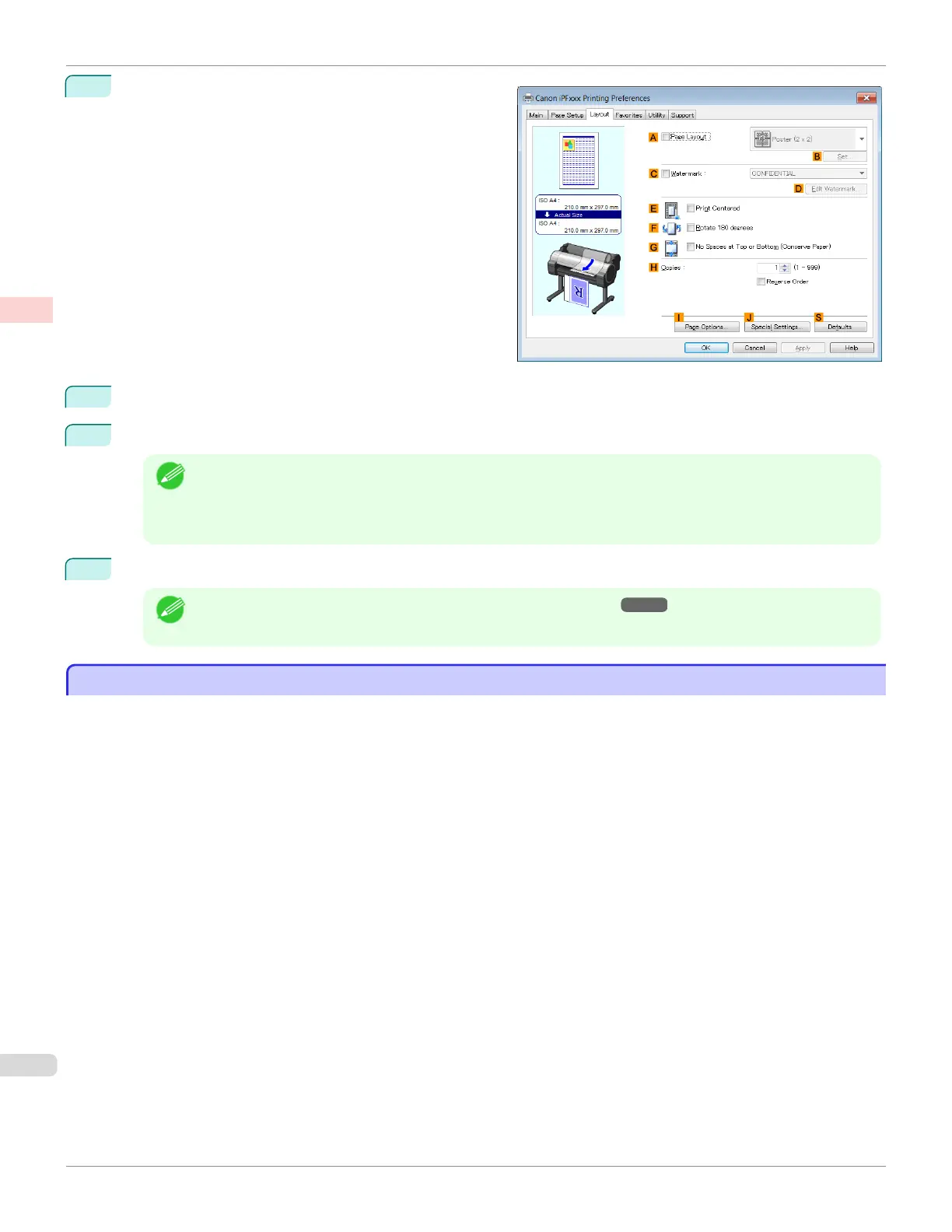 • You can select the layout order for placing four pages on a sheet and a frame border in the Page Layout