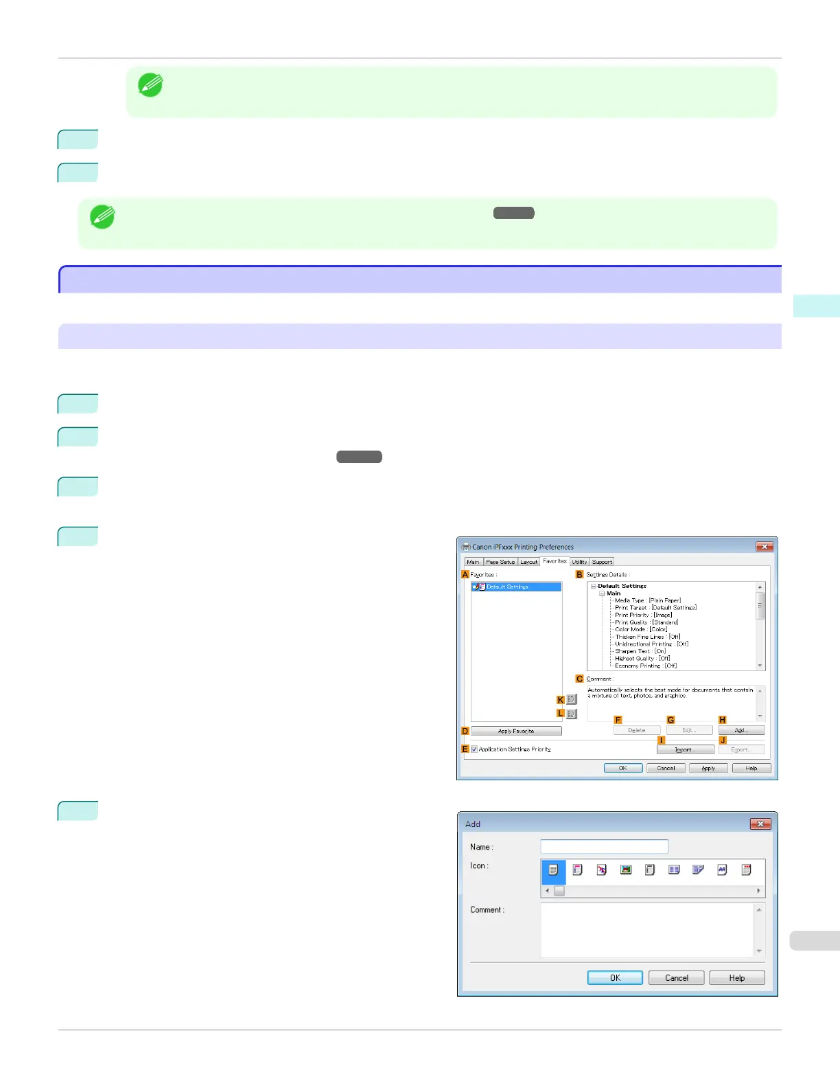 This section describes the procedure for registering printing settings that have been changed in the driver as Favor-