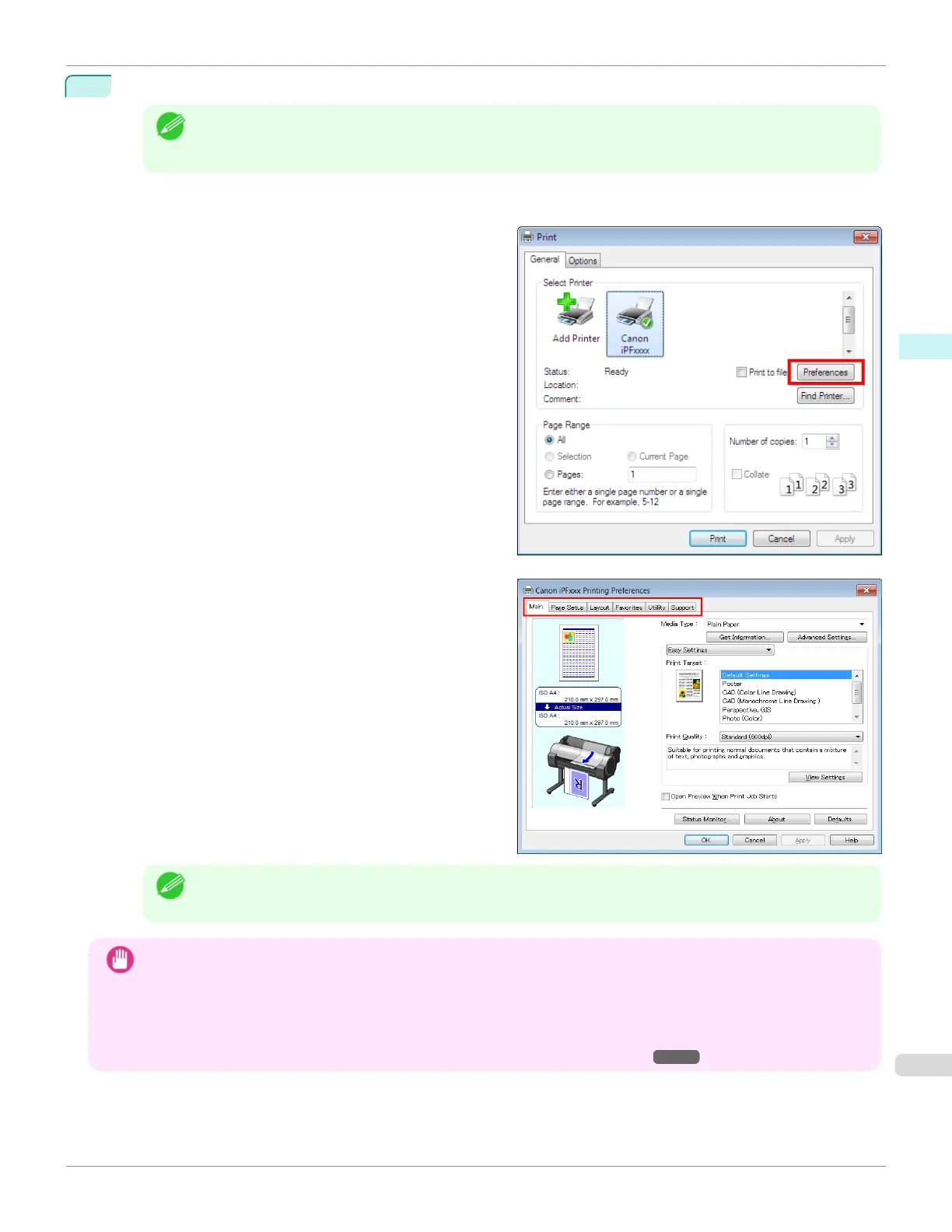 • The dialog box for specifying printing conditions varies depending on the source application. In some cases,