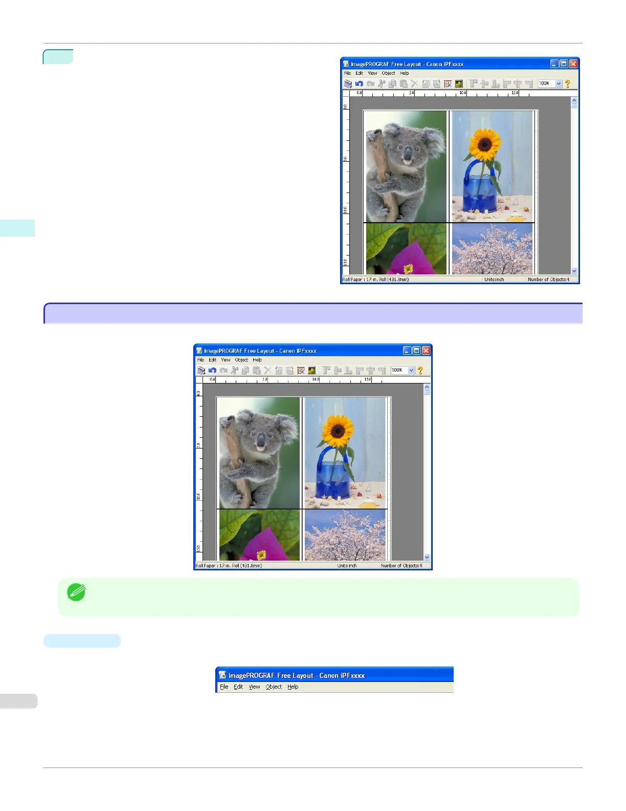 The Free Layout main window consists of the menu and tool bars, layout area and status bar.