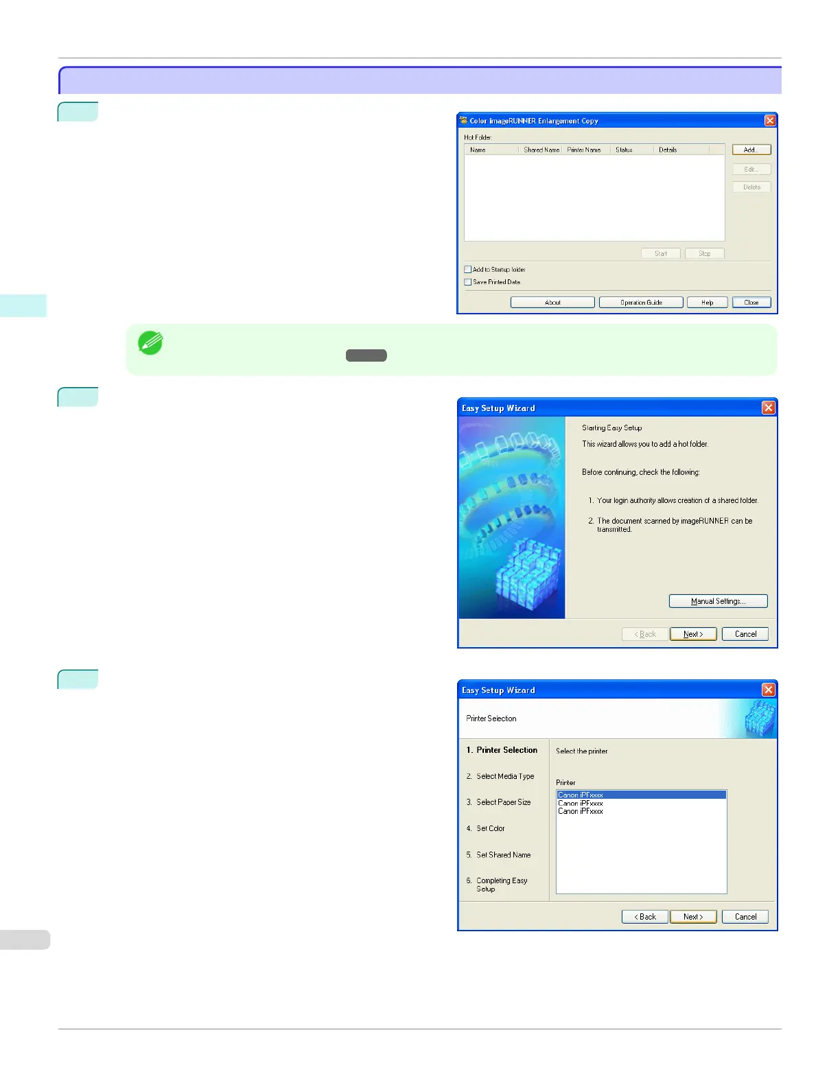• For the step to open the Color imageRUNNER Enlargement Copy dialog box, see "Starting Color image-