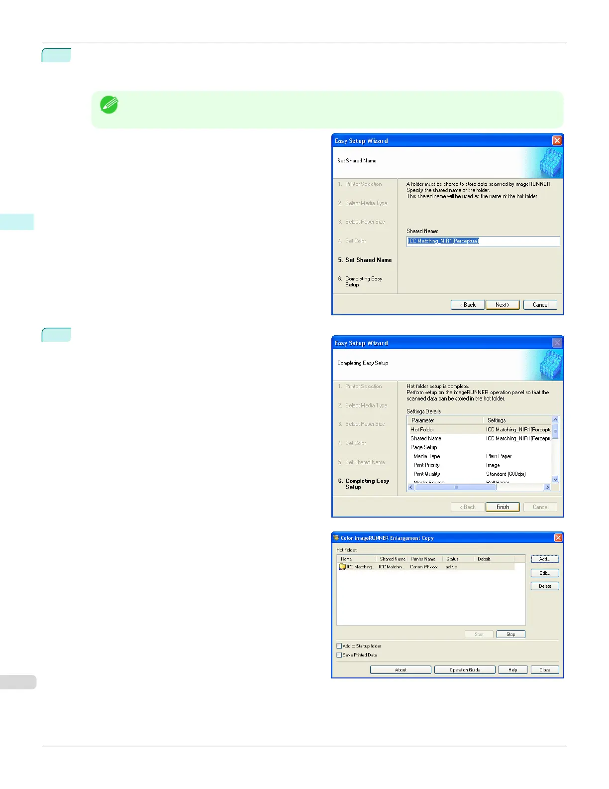 To receive a document scanned with the Color imageRUNNER, you need to share a folder. Enter the folder