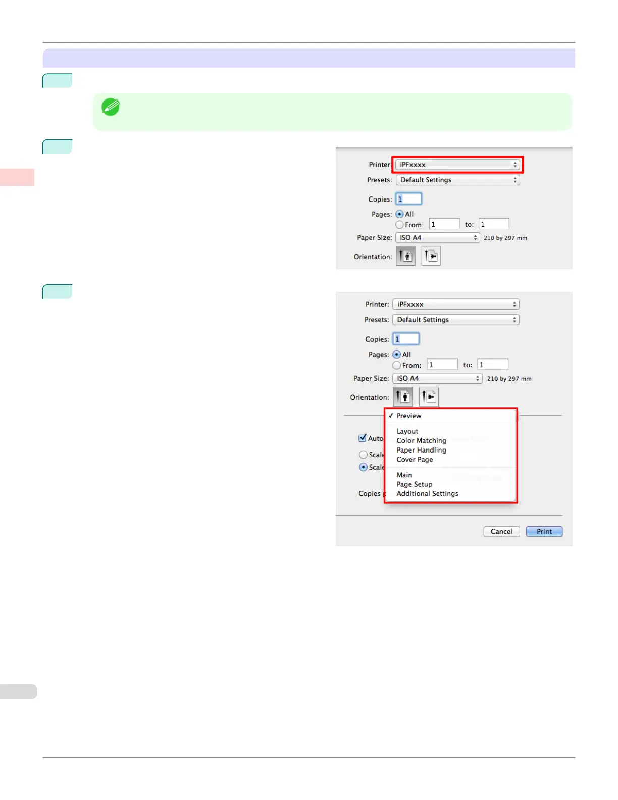 In the application software, select Print from the File menu to display the dialog box for printing conditions.