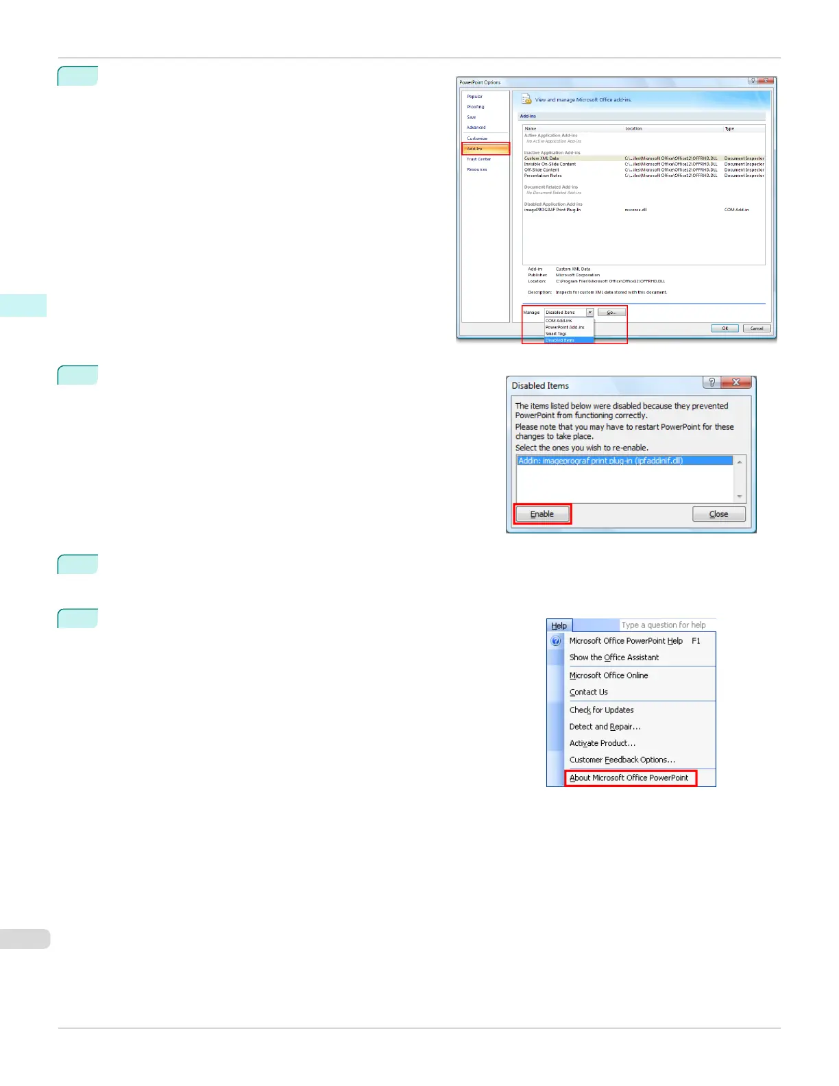 If Addin imageprograf print plug-in (ipfaddinif.dll) is dis-