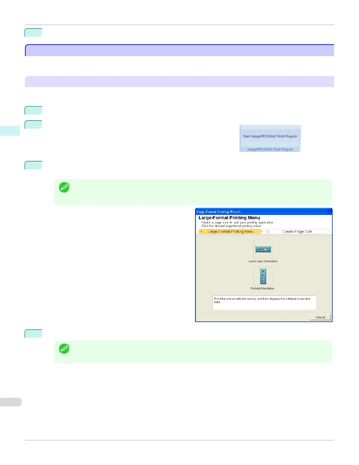 • If you want to change the display to another file or application while the Large-Format Printing Wizard is