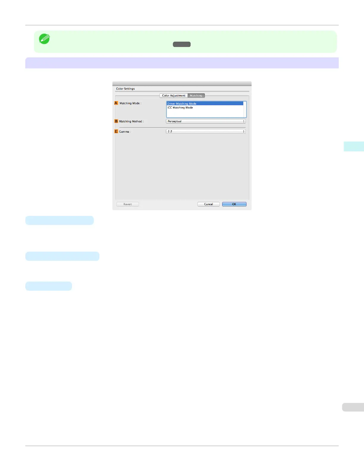 • To display the Matching pane, on the Main pane click Color Settings by Color Mode in Advanced Settings, and