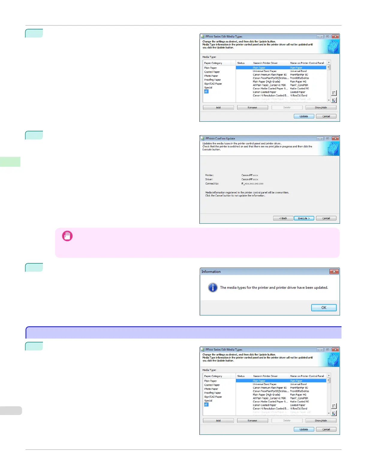 • When setting a data to the printer that differs from the data to be updated, the selected media information file