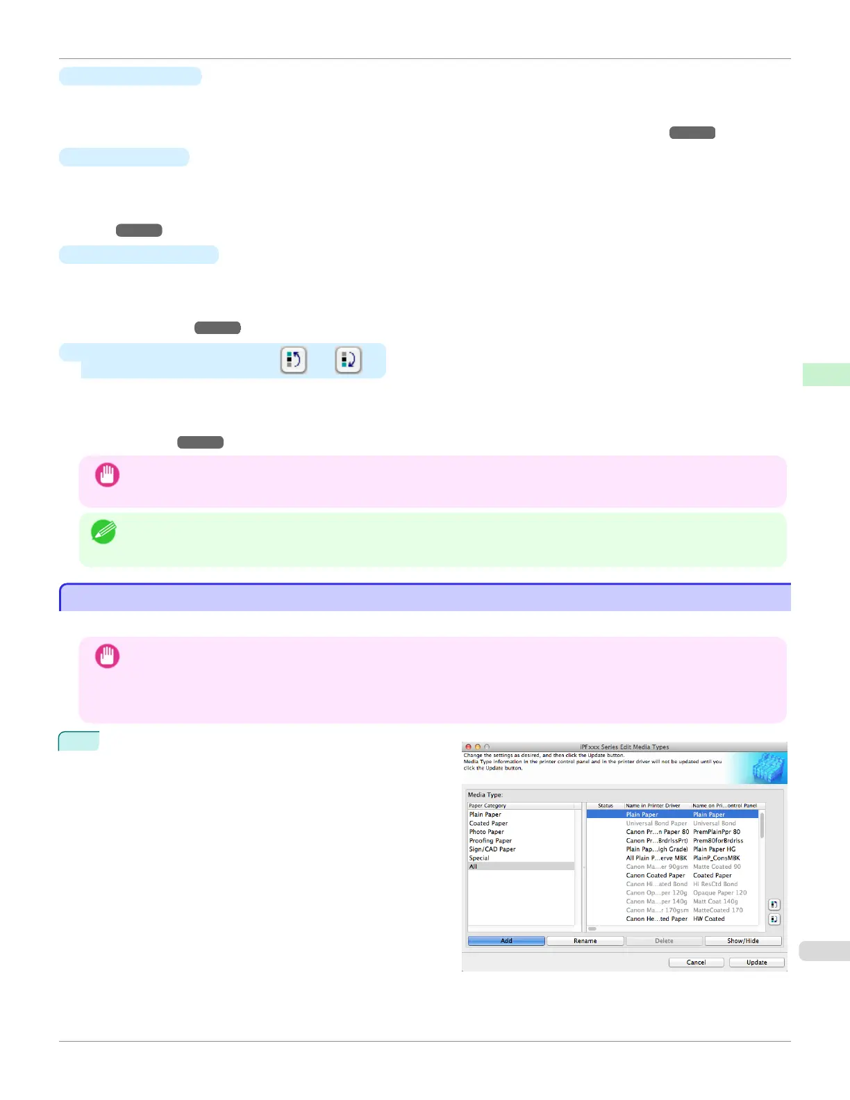 • When you update the media type information, perform the same update on all of the PCs that are using that printer.