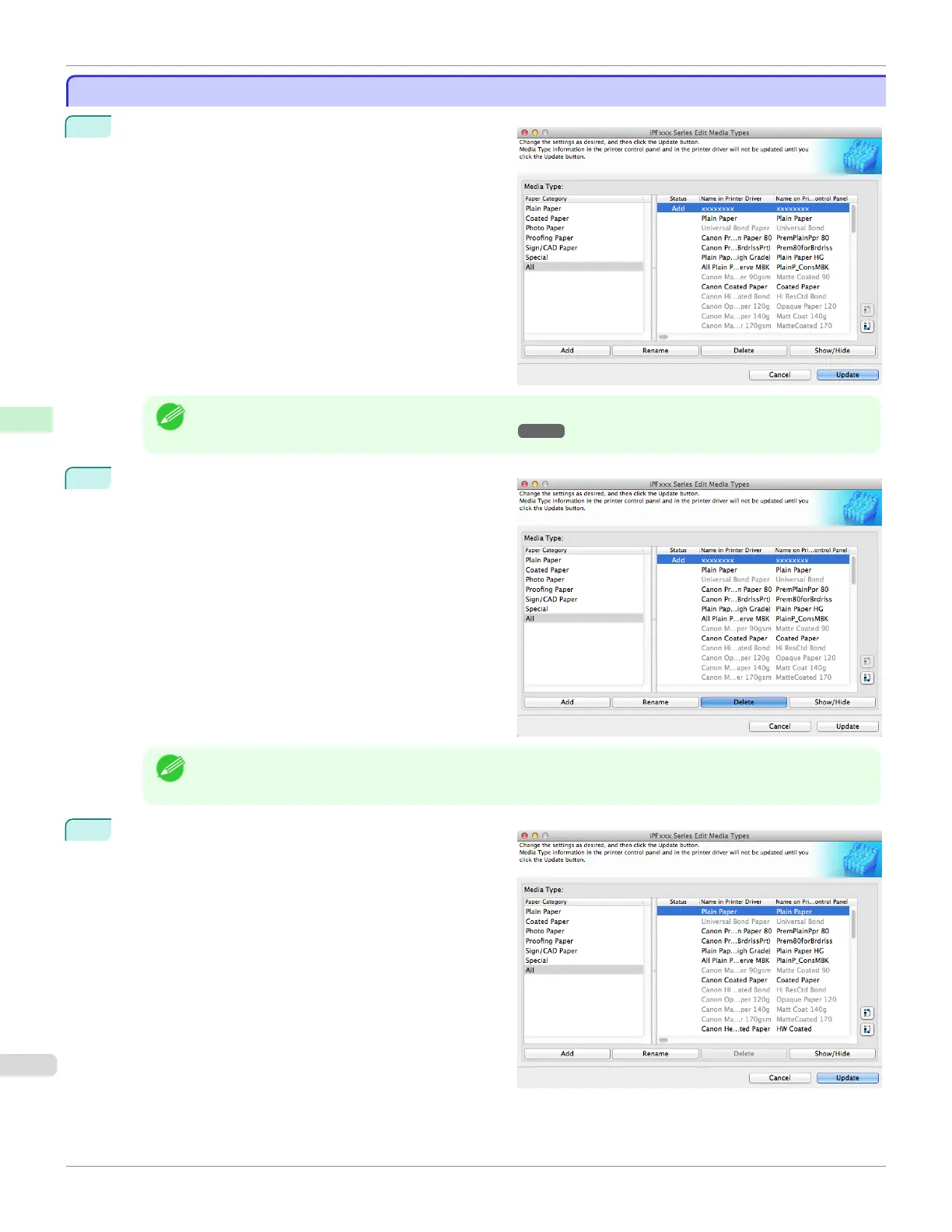 • Only paper for which Status in the Media Type is Add can be deleted.