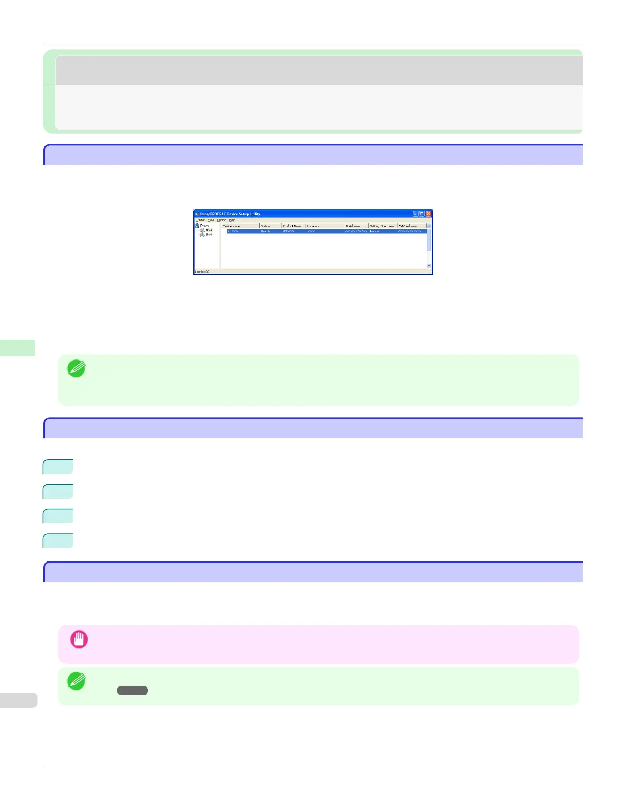 Conguring the IP Address Using imagePROGRAF Device Setup Utility ...................................................... 508