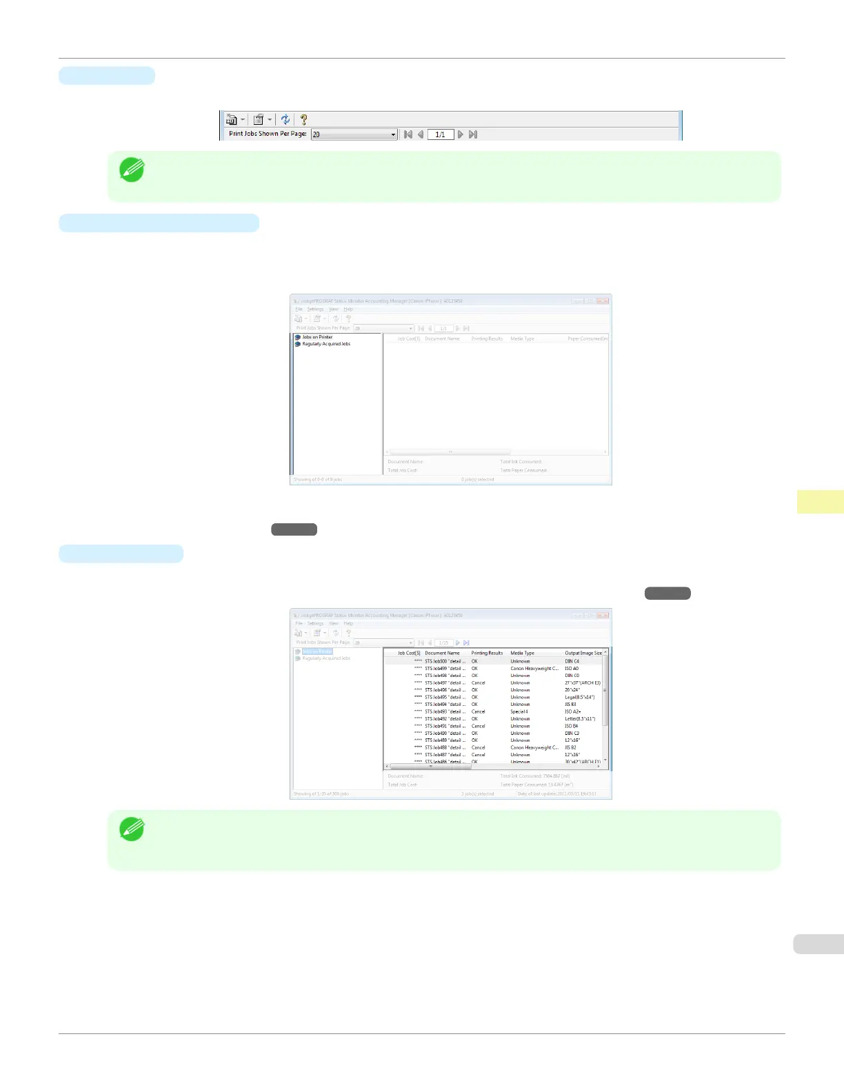 For more information on how to select the job logs displayed, see "Switching Between Displaying Jobs on Printer