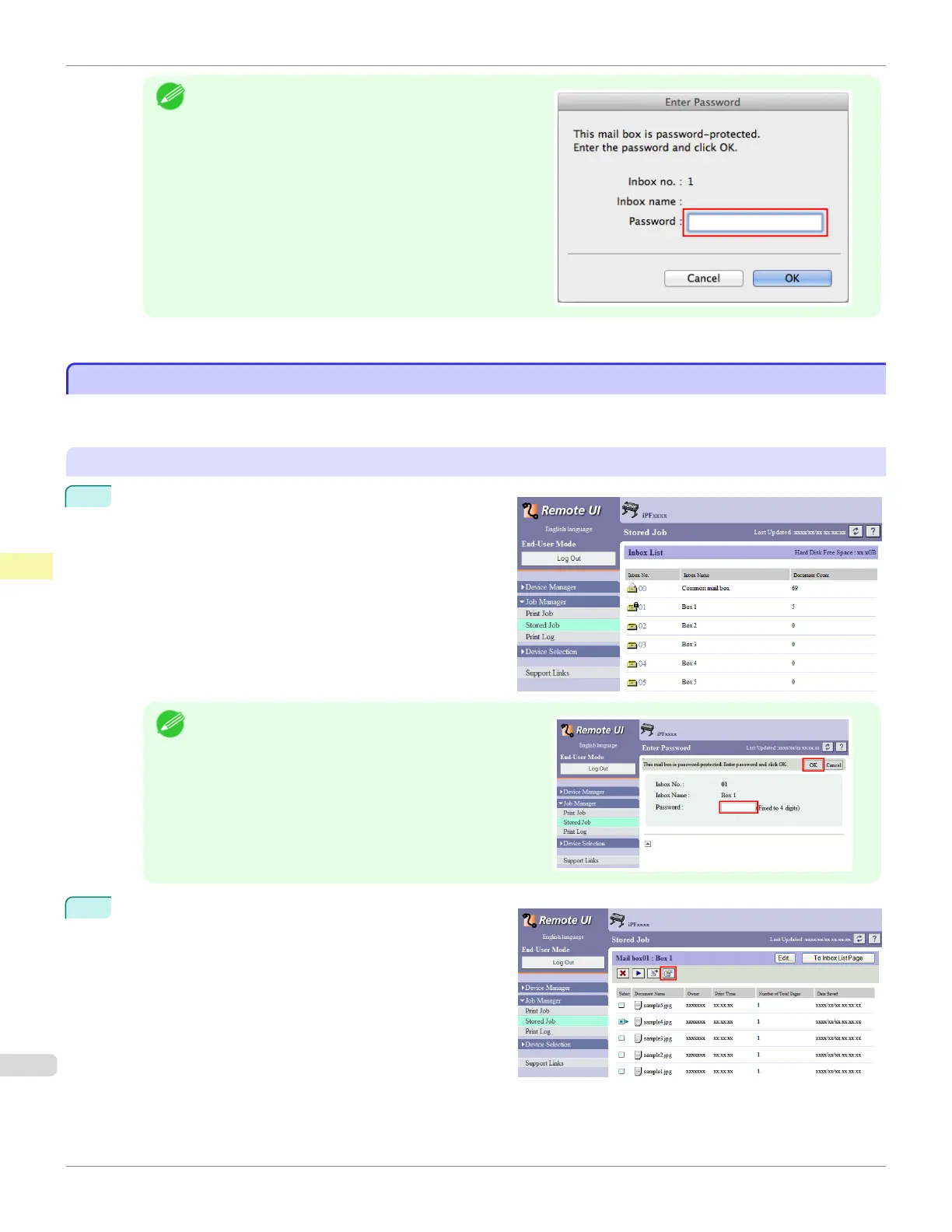 This operation is available in RemoteUI, imagePROGRAF Status Monitor, and imagePROGRAF Printmonitor.
