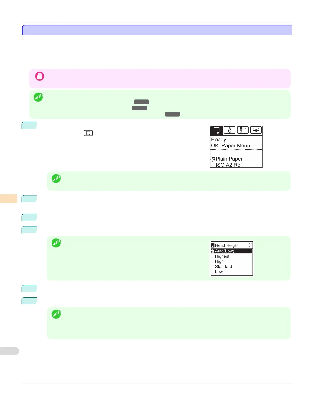 Specifying a low Printhead height makes images clearer and enhances printing quality but may cause paper to rub