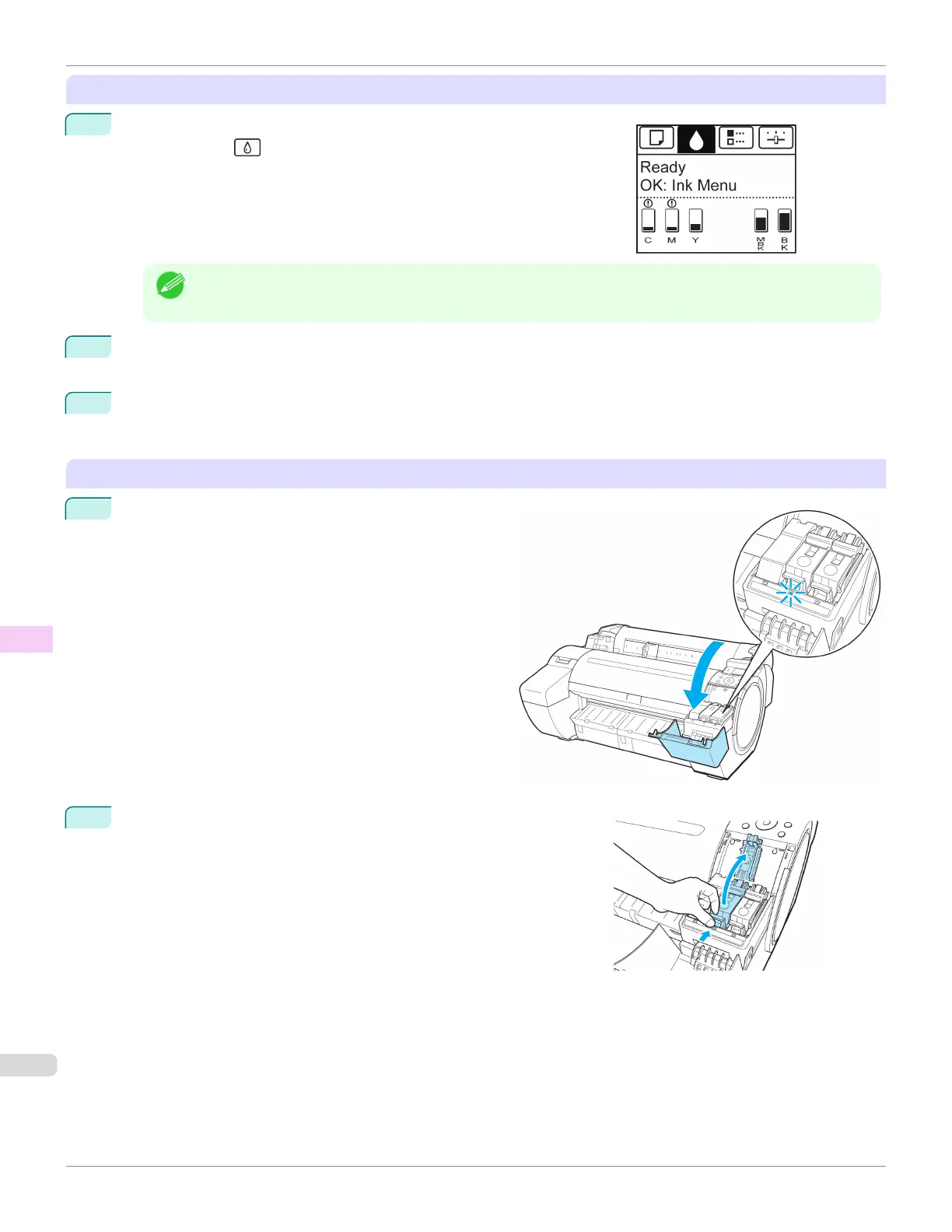 Access the menu for Ink Tank replacement