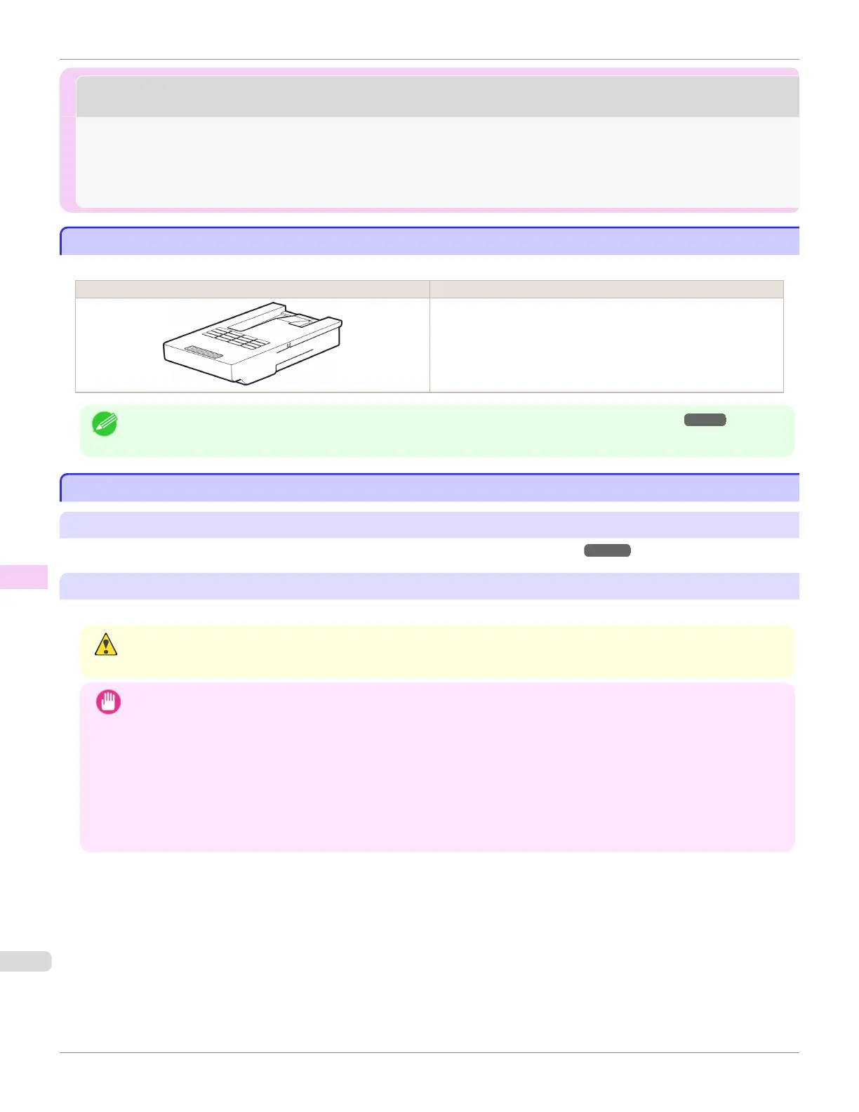 • To prevent ink from leaking from a used Maintenance Cartridge, avoid dropping the cartridge or storing it at an angle.