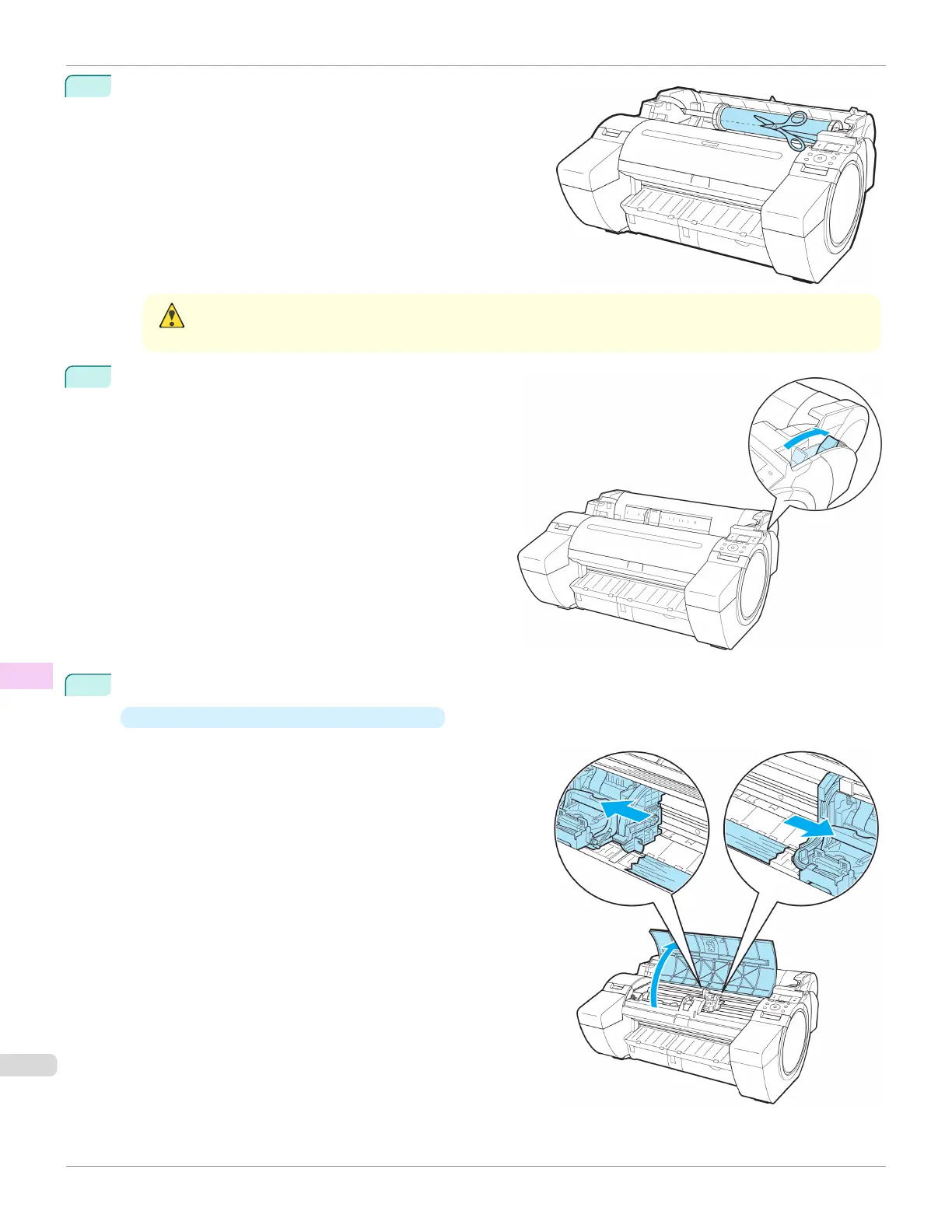 • When cutting paper, be careful to avoid injury or damage to the printer.