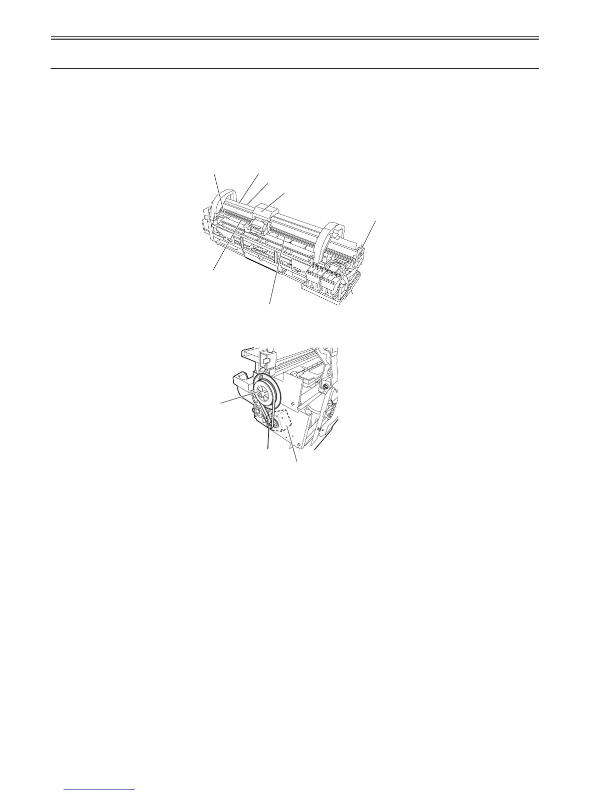 The moving parts of the printer include the carriage unit, carriage belt, ink tube, flexible cable and feed motor driven by the carriage motor and the feed and pinch