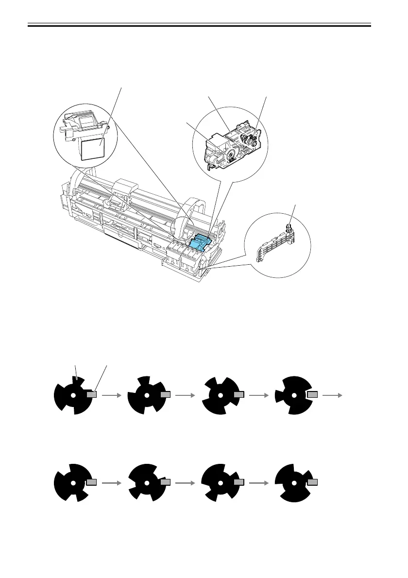 As the cam rotates, it shields the sensor light of the photointerrupter-based pump cam sensor or allows it to be