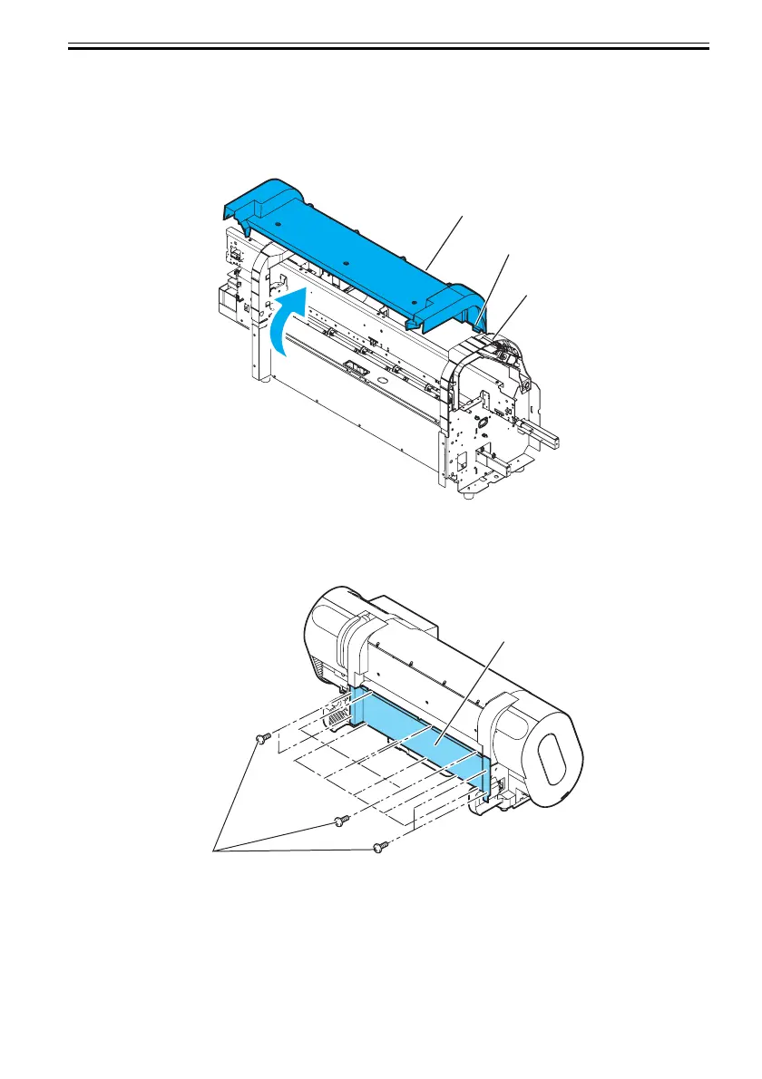 To detach the upper rear cover, first remove the top cover, the right rear cover and left front cover, left rear