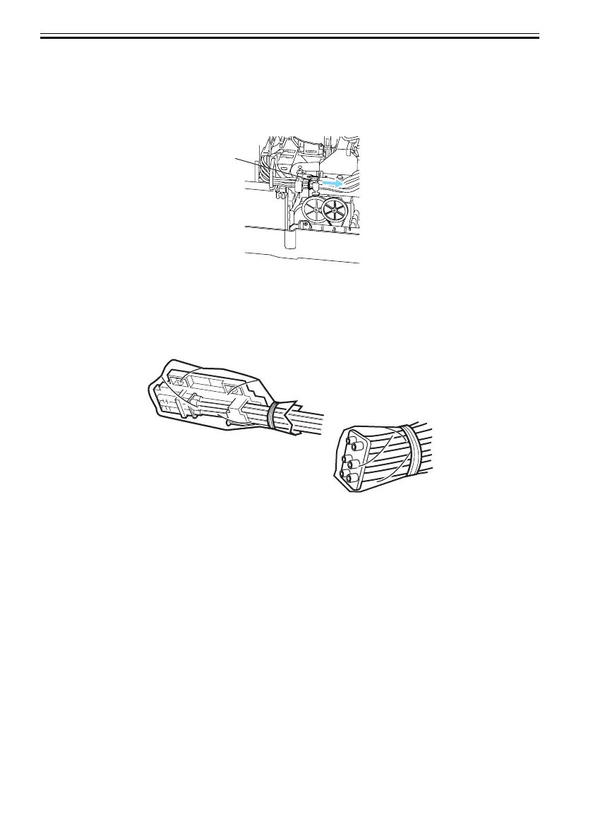 (5) Remove the feed guide (right) that encloses the flexible cables extending from the main controller.