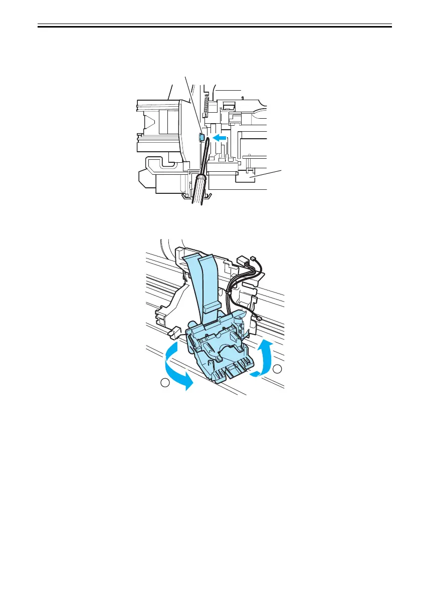 (9) To remove the head holder, press the lock pin located rearward to its left with a flat-blade screwdriver