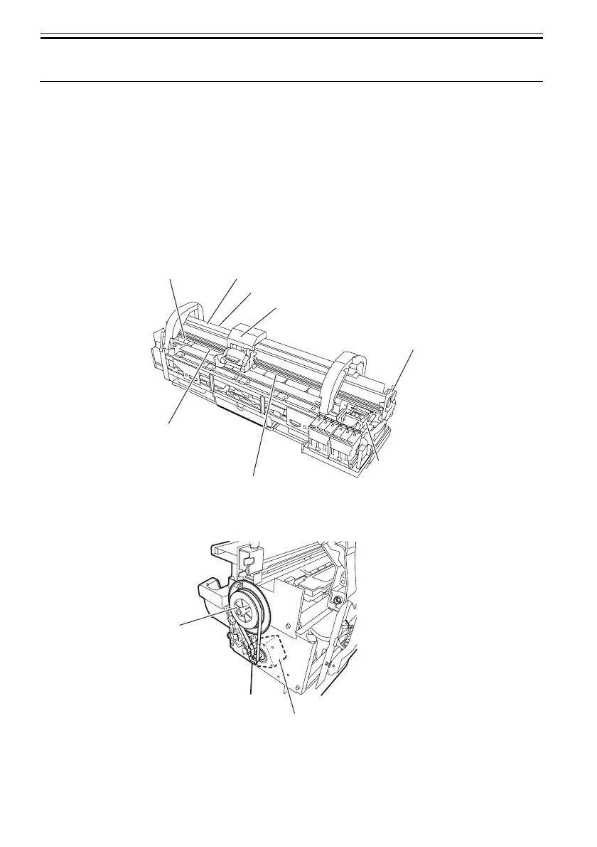 The moving parts of the printer include the carriage unit, carriage belt, ink tube, flexible cable and feed motor