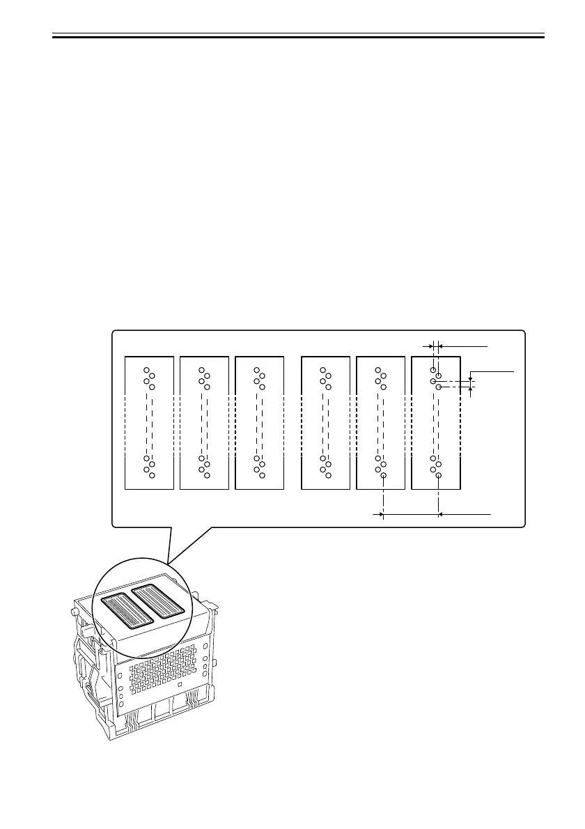 In each column, 1280 nozzles are arranged in a staggered pattern at intervals of 600 dpi, forming a 2560-nozzle