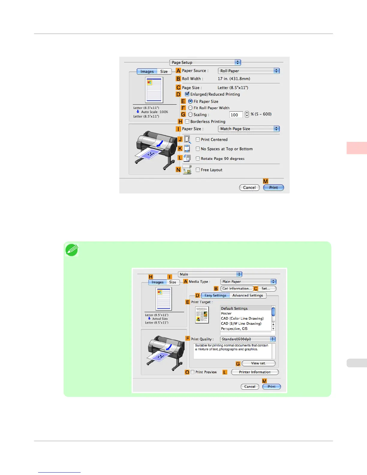 • If the width of the roll loaded in the printer is not shown in B Roll Width, click L Printer Infor-