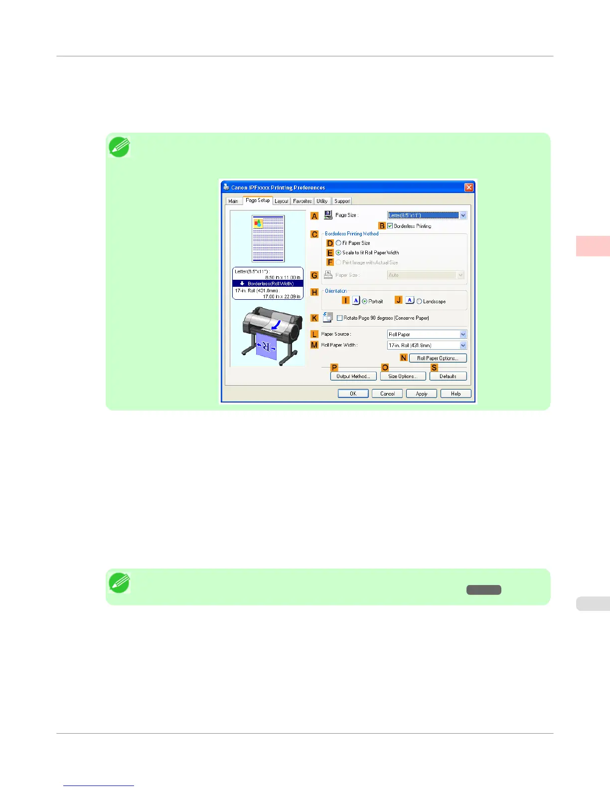 11. Select the width of the loaded roll in the Roll Paper Width list. In this case, click 16-in. Roll (406.4mm), and then