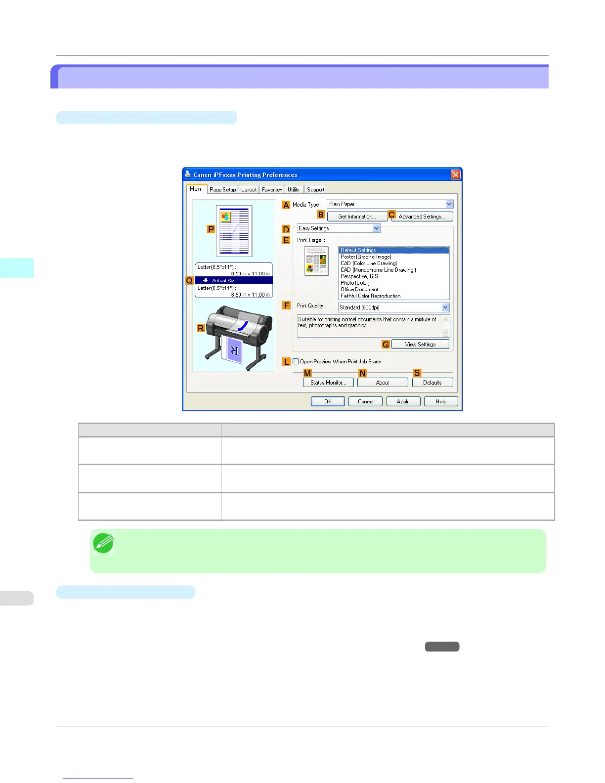 • To confirm the Print Target specified in Easy Settings, click G View Settings on the Main sheet to